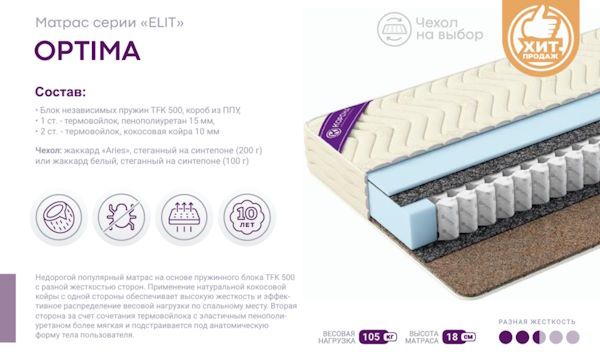 | Подпись к товару | Max. вес на спальное место - 105 кг, С независимыми пружинами, любой размер матраса |