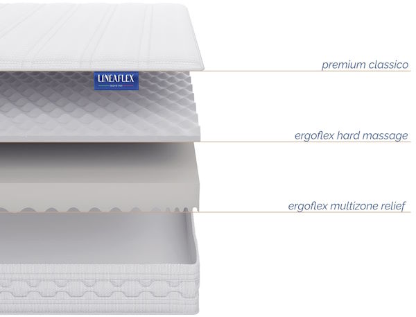 Первый слой высотой в 5 см – Soft-Massage. Предоставляющий желаемый комфорт людям, предпочитающим пружинистые, но мягкие матрасы. Второй слой – орто-пена ERGOFLEX, идеальная структура которая позволяет поддерживать наилучшую температуру и влажность. В комплект также входит чехол CLASSICO сделанный из текстильного материала, преимуществом которого является долговечность. Стежка – 300 грамм гигроскопичного файбера.