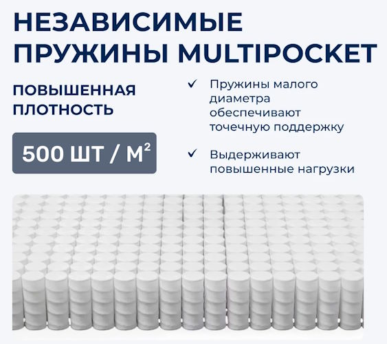 Подпись к товару Max. вес на спальное место - 140 кг, С независимыми пружинами, любой размер матраса