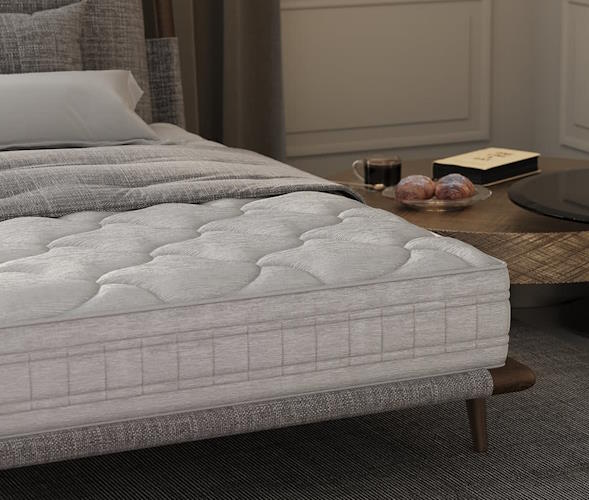 Поимо этого, матрас Лотос долговечен, не деформируется и не вызывает аллергии. Высота составляет 22 см. Чехол пошит из великолепного жаккарда перламутрового цвета Ambiente. Стежка – терморегулируемый объемный холлофайбер. По периметру модели, для удобства перемещения, предусмотрены четыре ручки.