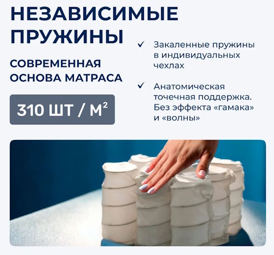Подпись к товару Max. вес на спальное место - 170 кг, С независимыми пружинами, любой размер матраса
