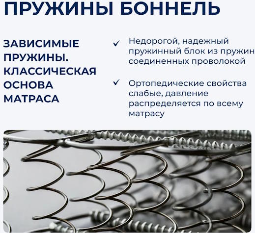 Подпись к товару Max. вес на спальное место - 90 кг, Блок зависимых пружин Bonnel, любой размер матраса