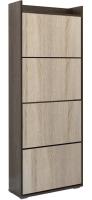 Обувница XXL Танго - высокая компактная тумба для вертикального хранения обуви состоит из четырех автономно открывающихся секций. Обувница имеет регулируемые опоры. Материал изготовления: ЛДСП в нескольких комбинациях тонировок.