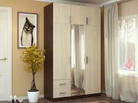 Изделие состоит из нескольких зон для хранения одежды и обуви, включая два выдвижных ящика для мелких вещей, отделение для одежды на вешалках и вместительные полки, в центральную створку вставлено зеркало, что помимо основной функции, позволяет визуально расширить пространство.